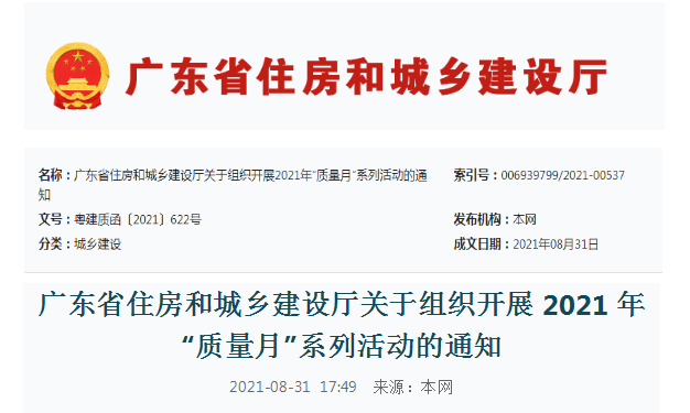 為深入貫徹習(xí)近平新時(shí)代中國特色社會(huì)主義思想,全面落實(shí)黨的十九大和十九屆二中、三中、四中、五中全會(huì)精神,牢固樹立“質(zhì)量第一”的意識(shí),不斷提升建筑工程品質(zhì),根據(jù)《市場(chǎng)監(jiān)管總局等20個(gè)部門關(guān)于開展2021年全國“質(zhì)量月”活動(dòng)的通知》(國市監(jiān)質(zhì)〔2021〕51號(hào)),我廳決定于9月組織開展2021年全省住房城鄉(xiāng)建設(shè)系統(tǒng)“質(zhì)量月”活動(dòng)。現(xiàn)將有關(guān)事項(xiàng)通知如下: