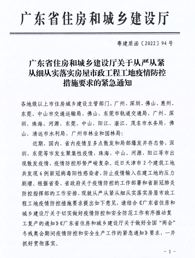 關于轉發省住建廳《關于從嚴從緊從細從實落實房屋市政工程工地疫情防控措施的緊急通知》的緊急通知