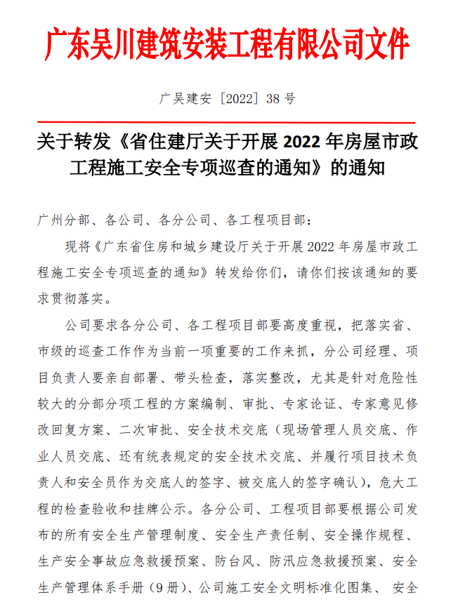 為認(rèn)真落實(shí)《住房和城鄉(xiāng)建設(shè)部關(guān)于開(kāi)展房屋市政工程安全生產(chǎn)治理行動(dòng)的通知》(建質(zhì)電〔2022〕19號(hào))、《廣東省安全生產(chǎn)委員會(huì)關(guān)于印發(fā)<廣東省安全生產(chǎn)大檢查工作實(shí)施方案>的通知》(粵安〔2022〕6號(hào))工作部署,進(jìn)一步壓實(shí)建設(shè)各方安全生產(chǎn)主體責(zé)任,治理施工安全突出問(wèn)題,切實(shí)提升全省施工安全管理水平,按照我廳今年重點(diǎn)工作任務(wù)安排,結(jié)合我省城市建設(shè)安全專項(xiàng)整治三年行動(dòng)有關(guān)工作實(shí)際,我廳通過(guò)政府購(gòu)買服務(wù)的方式,委托第三方專業(yè)機(jī)構(gòu),開(kāi)展全省房屋市政工程施工安全專項(xiàng)巡查?,F(xiàn)將有關(guān)事項(xiàng)通知如下: