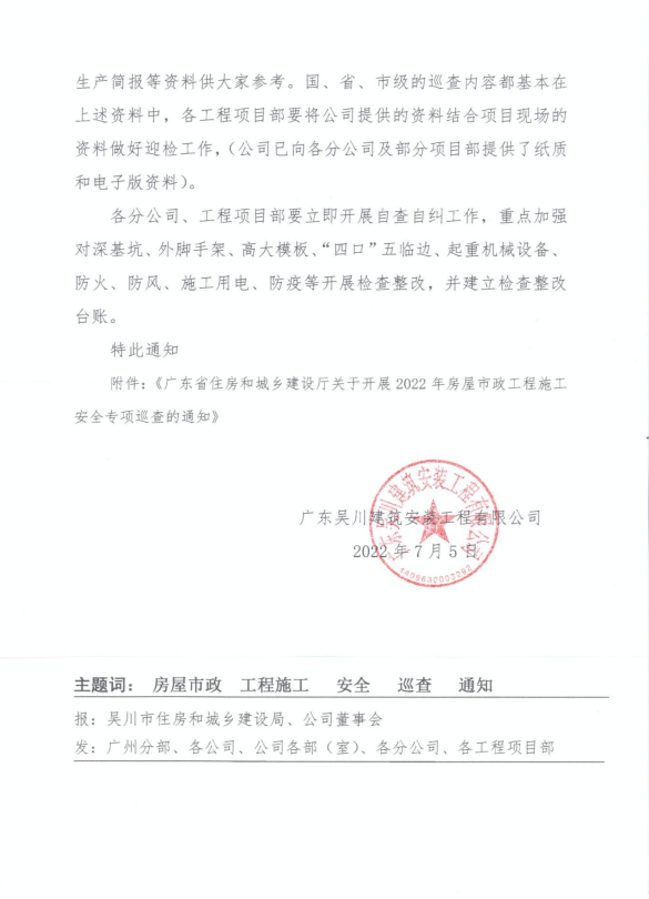 此次安全專項(xiàng)巡查工作時(shí)間長(zhǎng)、涉及面廣,請(qǐng)各地級(jí)以上市住房城鄉(xiāng)建設(shè)主管部門安排1名業(yè)務(wù)骨干作為巡查工作聯(lián)絡(luò)員,于7月6日前將在建項(xiàng)目清單(附件1)、聯(lián)絡(luò)員名單回執(zhí)(附件2)報(bào)送我廳工程質(zhì)量安全監(jiān)管處。并請(qǐng)于安全專項(xiàng)巡查組檢查工作結(jié)束后一個(gè)月內(nèi)將有關(guān)整改情況和執(zhí)法查處情況報(bào)送我廳。